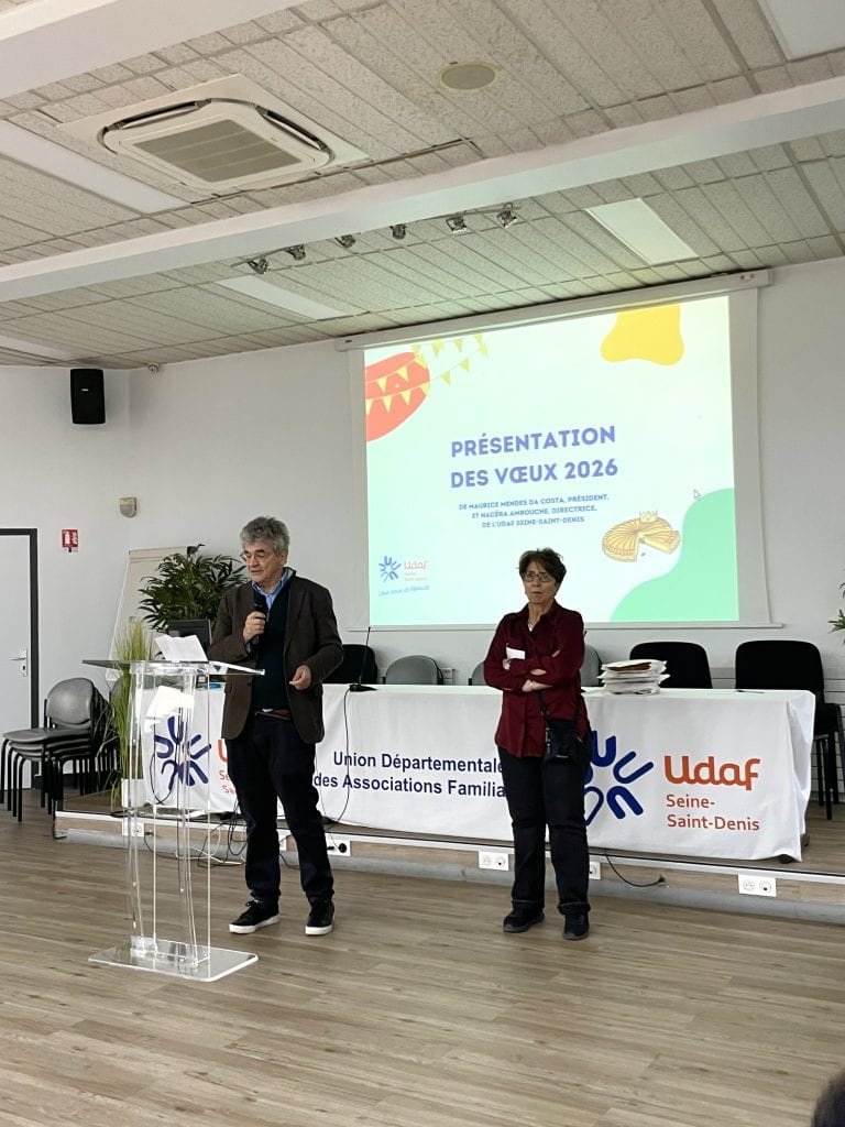 Mardi 13 janvier après-midi, Monsieur Maurice MENDES Da COSTA, Président de l’UDAF, a réuni les salariés pour leur présenter ses meilleurs vœux pour l’année 2026, accompagné de Madame Nacéra AMROUCHE, Directrice de l’UDAF.